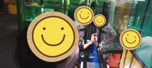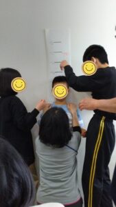 プラスの壁に紙を貼り、高校生のお兄さんが印をつけてくれました✍