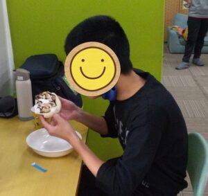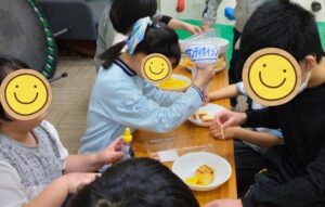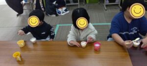 ホイップやチョコシロップは高学年のお兄さん・お姉さんがかけてくれました!