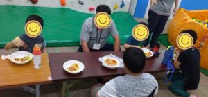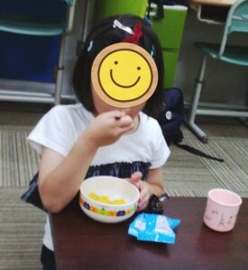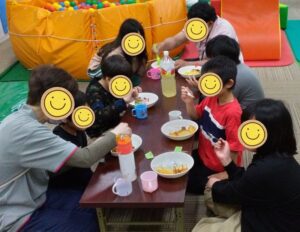 室内でも、自分で作ったお弁当をみんなで食べると美味しいね💗