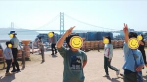明石海峡大橋とみんなでパシャリ📷❣ みんな笑顔です😄