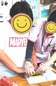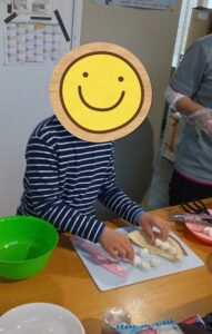 早く来ていたお兄さんお姉さんには、 ウインナーを切るお手伝いしてもらいました🔪🍖
