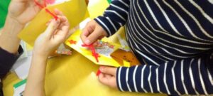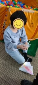 高学年のお兄さんは、紐の付け方が分かると、お友だちに教えてくれる姿も見られました!